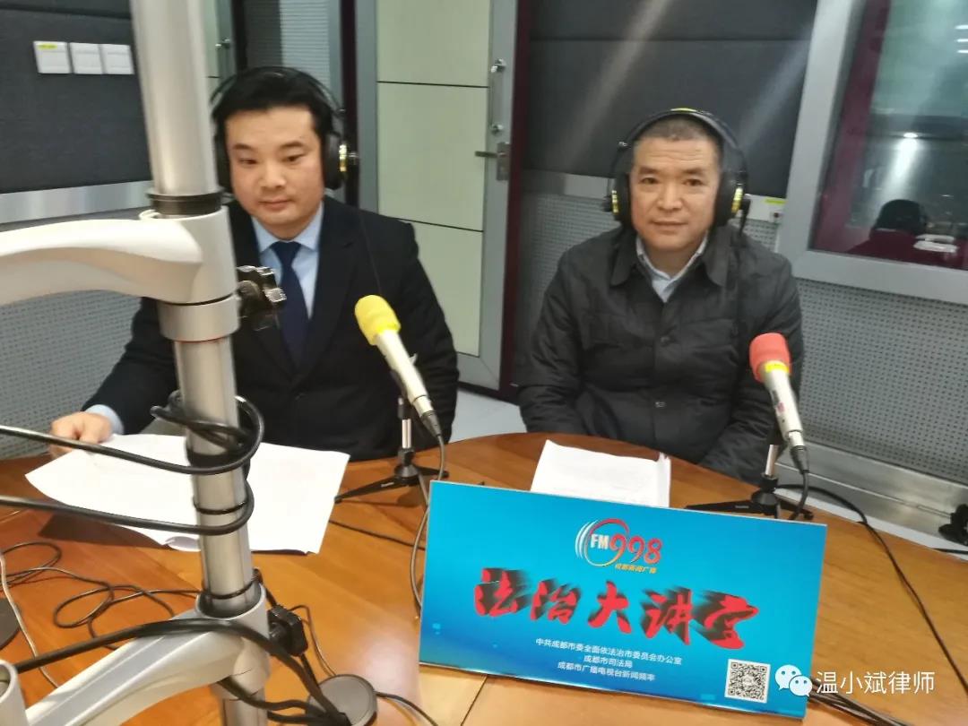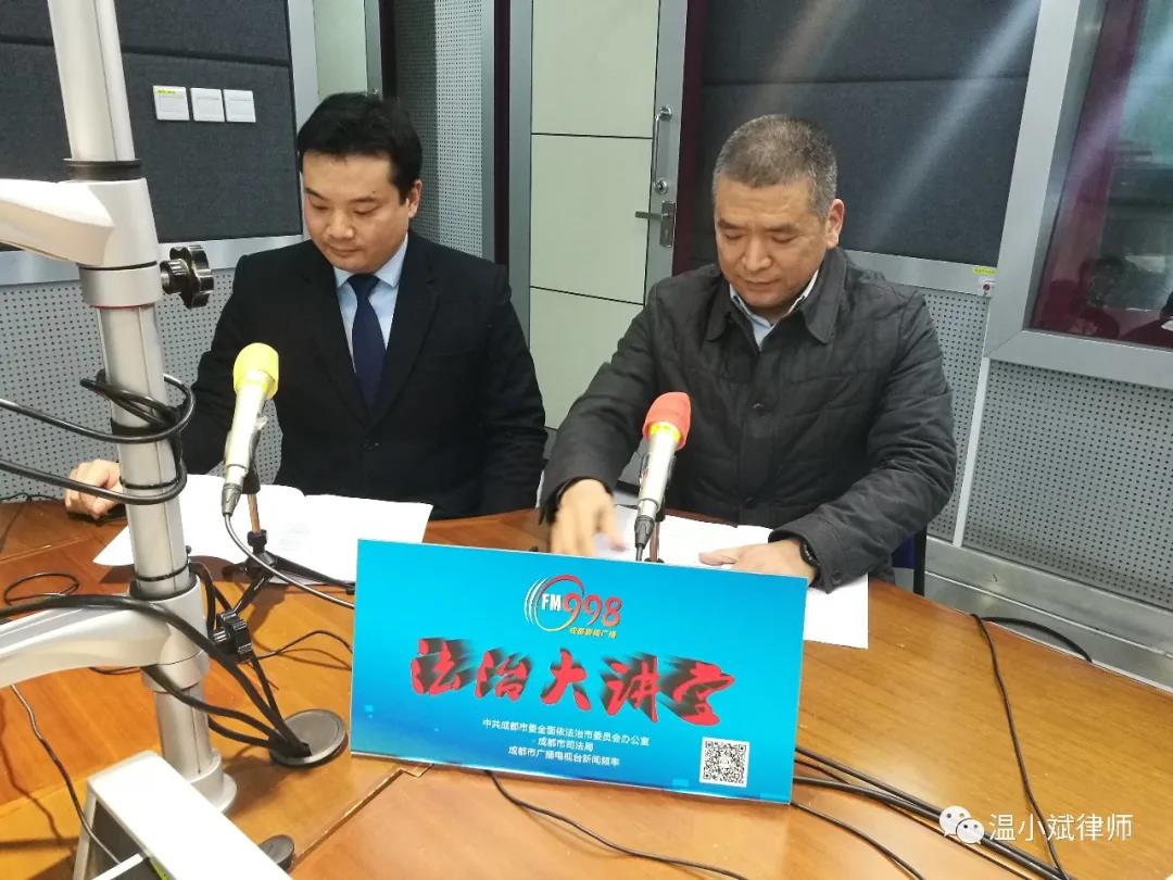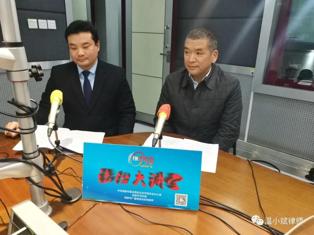 2020年12月22日参加的“中共成都市委全面依法治市委员会办公室,中共成都市委全面依法治市委员会守法普法小组,成都市司法局主办,成都市广播电视台《998法治大讲堂》普法节目”,节目录制现场。
